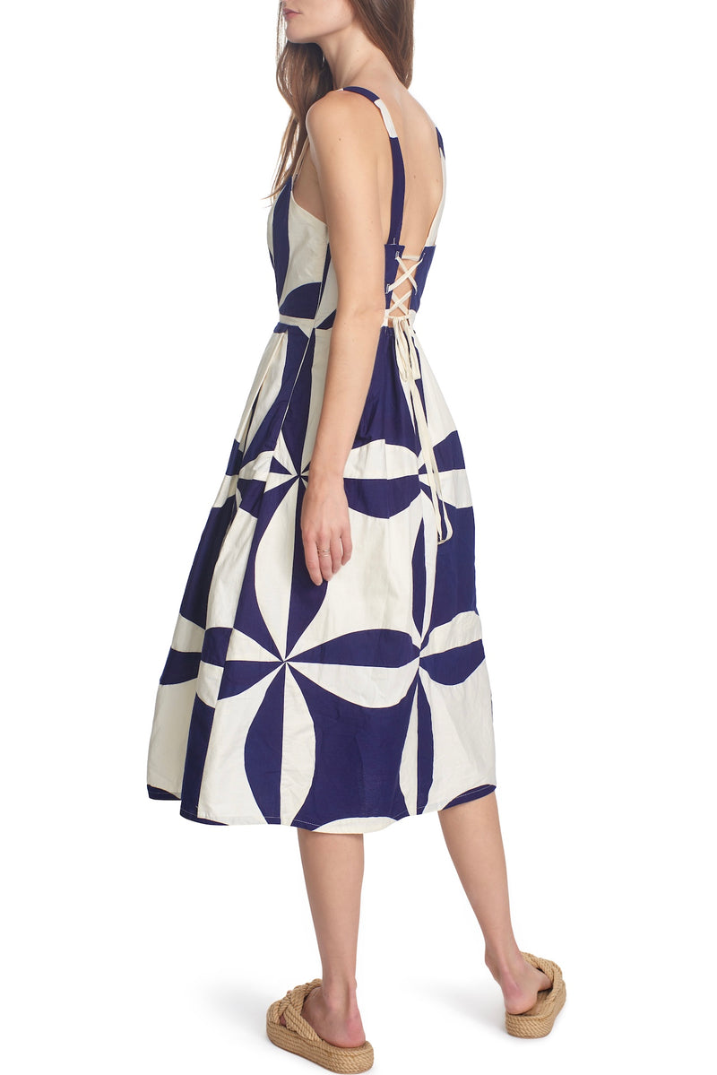 The Ramona fit and flare dress, lace up in back , midi length, lined. Has pockets