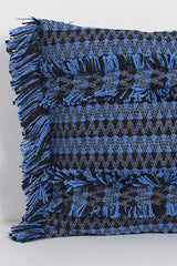 Blue Jacquard Fringe Pillow