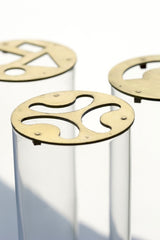Made by Blume Studios, This vase is perfect for single or few wild flowers from your garden. The brass cover will hold them up and prevent them from slouching and maybe even increase their life span. Single flowers have never looked this good.
