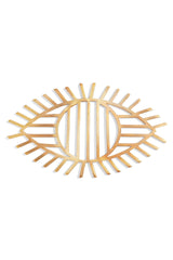Very cool trivet in the shape of an eye. Made of square lines if intersecting brass. Sturdy and functional. The open brass work helps to allow for aeration and helps to keep it warm as well. Also makes a lovely kitchen wall decor. Each item is unique due to its handmade nature.