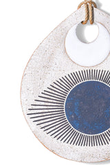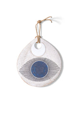 MQuan Hand built in NYC. Hand built teardrop shaped wall hanging depicting an indigo eye and sphere design. Hand painted painted. Each item is unique due to its handmade nature.
