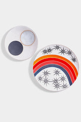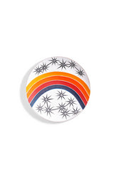 MQuan Hand built in NYC. Hand built decorative stoneware dish, depicting a rainbow and star design, hand painted painted on Matte white. Each item is unique due to its handmade nature.