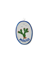 Hand Made in Jalisco and purchased while traveling in Mexico. Stoneware bowls featuring hand painted details. Cactus small serving bowl and crescent moon ring, salt or condiment bowl.