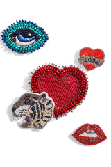 Playful beaded and embroidered pins. Hand made, each one is unique