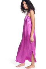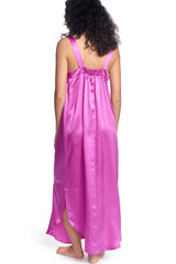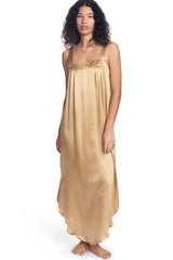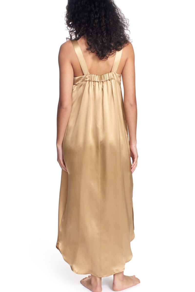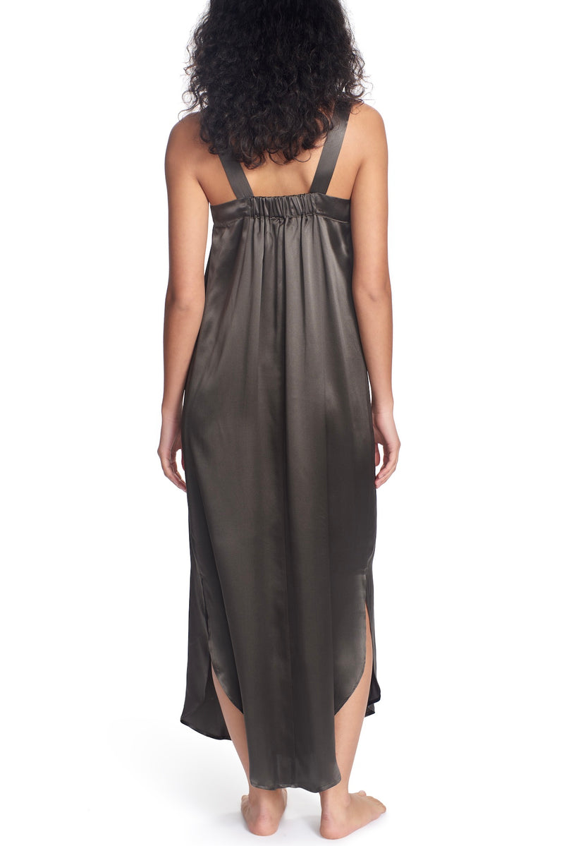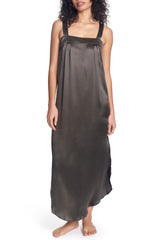 The ELOISE SILK LOUNGE DRESS is a luxe addition to your wardrobe. Made from silk charmeuse, this pleat banded top dress with adjustable straps and a curved hem. The elastic back adds comfort and versatility, perfect for lounging.