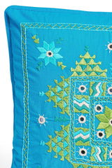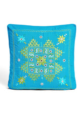 Hand Made in India. Embroidered on sustainable 100% cotton fabric and uses a zipper closure. Back side is solid. Each item is unique due to its handmade nature.