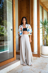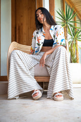 The Grace pant is fitted at the waist down to the low hip and releases into a flow-y fabulous pant. The pant has an invisible zipper in the back.
