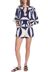 The Nico short, elastic waist, pull on, side pockets, hand made patchwork fabric.
