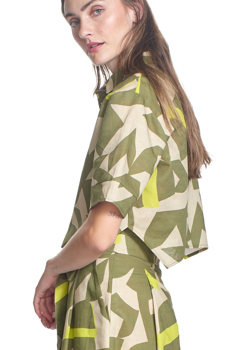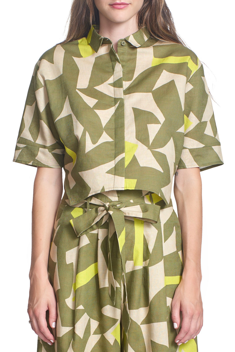 The Pippa top, cropped shirt, short sleeve, hidden buttons