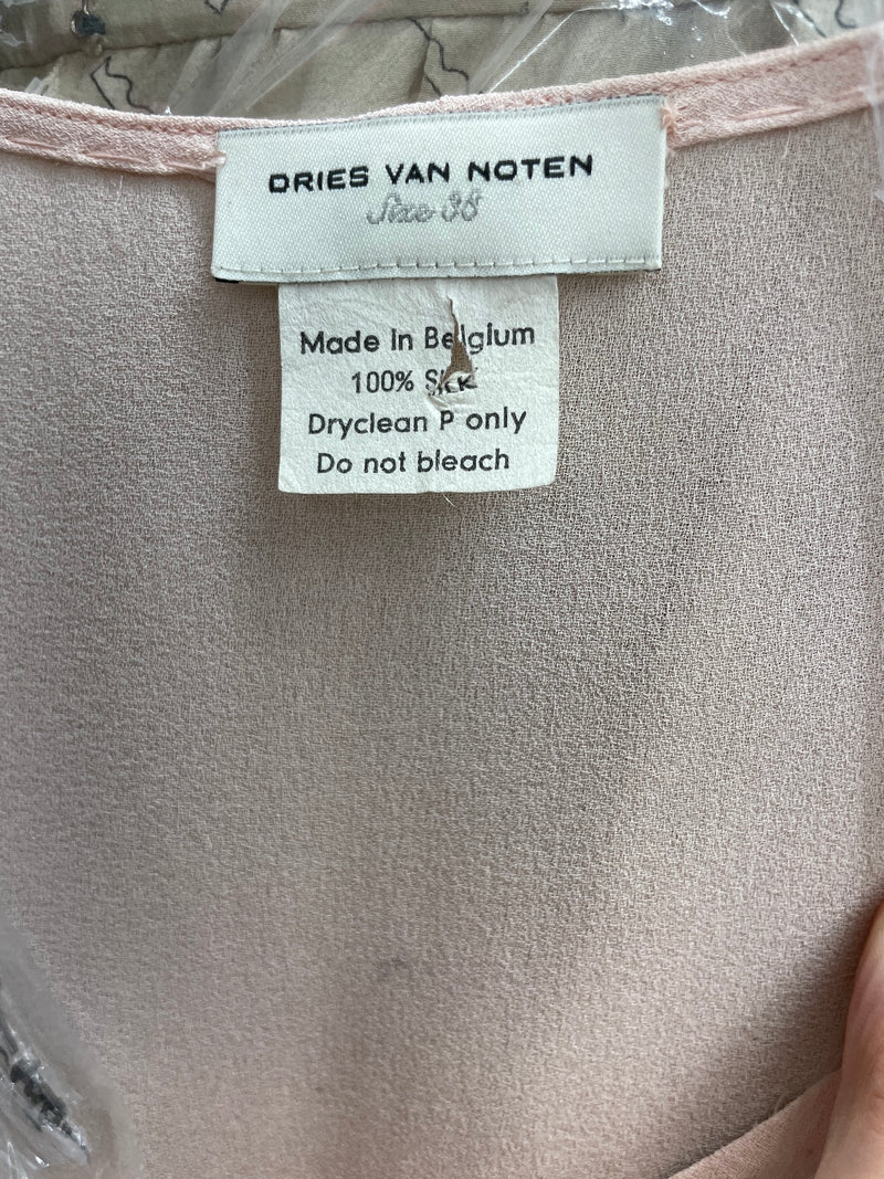 - Dries Van Noten chiffon side ruffle dress. yellow seed beads on the hem and slit