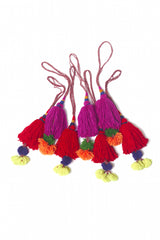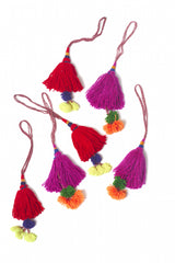 These colorful tassels are popular decorations on camels and elephants in India. Not a lot of camels here but they are perfect to decorate everyday items in you home or office. Try them to add a pop of color to a bland lamp, dangle from drawer pulls, or even on you spare set of keys.