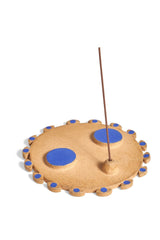 We asked ceramicist April Nickel to create some of her signature pieces in our latest color obsession Ocean blue. Here is her Evil Eye toker incense holder in speckled clay.