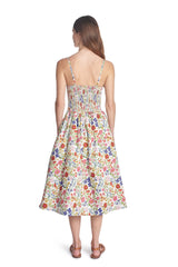 The Valentina fit and flare dress, elastic smocking in the back, midi length, lined with a tulle petticoat. Has pockets