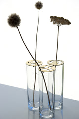 Made by Blume Studios, This vase is perfect for single or few wild flowers from your garden. The brass cover will hold them up and prevent them from slouching and maybe even increase their life span. Single flowers have never looked this good.